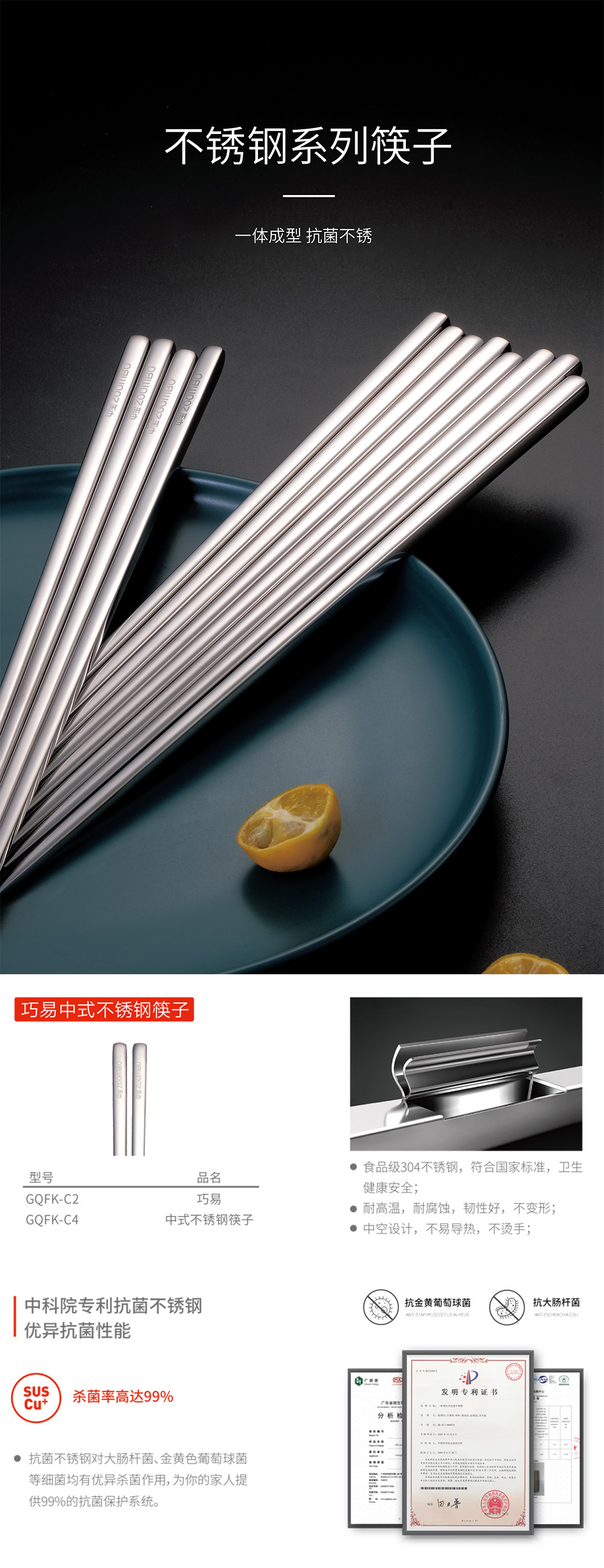 巧易中式不锈钢筷子
